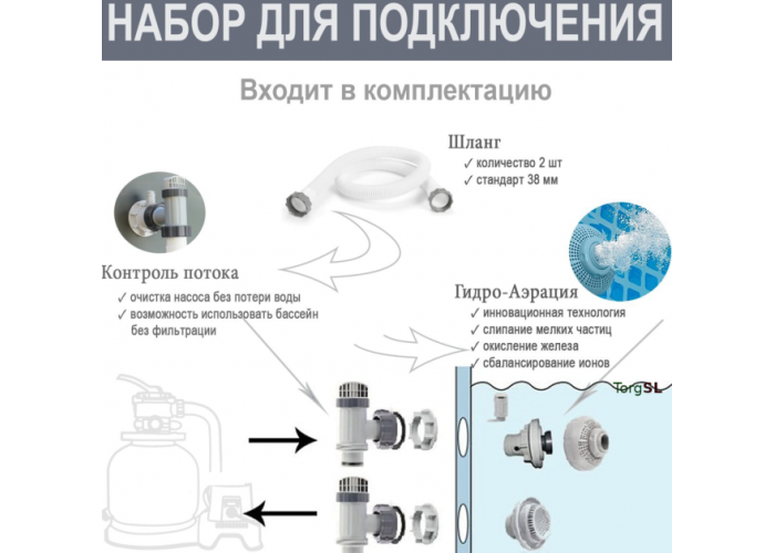 - Для фільтрування води застосовується очищений кварцовий пісок. При цьому досягається на 30% більший ступінь очищення, чим на картріджних насосах. Для зручності насос забезпечений шістьма робочими режимами зі зворотним промиванням.