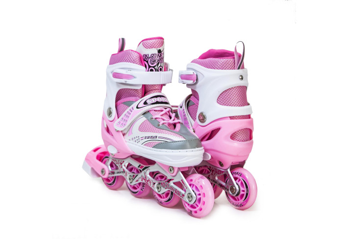 Scale Sports Happy - це відмінний набір із роликів та захисту для найменших дітей, які хочуть спробувати себе у цьому чудовому виді спорту. Конструкція роликів дозволяє змінювати розмір, під розмір стопи. Рама роликових ковзанів виконана з алюмінієвого металу, відповідно дуже надійна. Черевик виготовлений з ударостійкого пластику із зовнішнього боку, і приємного матеріалу, що дихає зсередини. Дані роликові ковзани - чудовий подарунок для дітей.