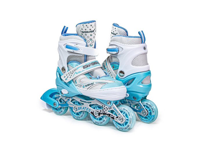 Scale Sports Happy - це відмінний набір із роликів та захисту для найменших дітей, які хочуть спробувати себе у цьому чудовому виді спорту. Конструкція роликів дозволяє змінювати розмір, під розмір стопи. Рама роликових ковзанів виконана з алюмінієвого металу, відповідно дуже надійна. Черевик виготовлений з ударостійкого пластику із зовнішнього боку, і приємного матеріалу, що дихає зсередини. Дані роликові ковзани - чудовий подарунок для дітей.