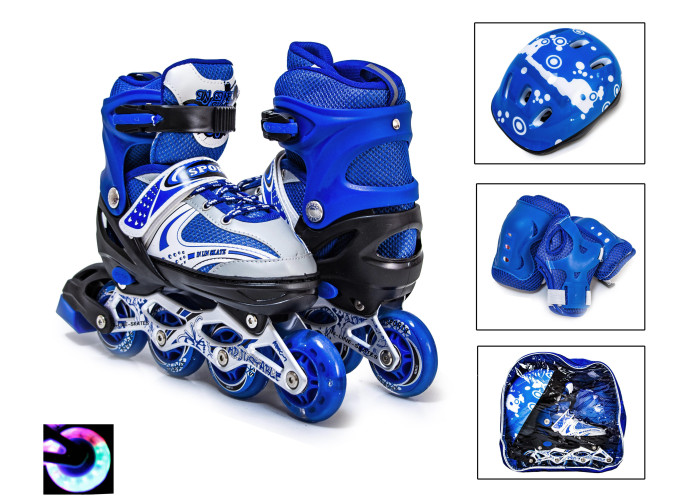 Scale Sports Happy - це відмінний набір із роликів та захисту для найменших дітей, які хочуть спробувати себе у цьому чудовому виді спорту. Конструкція роликів дозволяє змінювати розмір, під розмір стопи. Рама роликових ковзанів виконана з алюмінієвого металу, відповідно дуже надійна. Черевик виготовлений з ударостійкого пластику із зовнішнього боку, і приємного матеріалу, що дихає зсередини. Варто пам'ятати, що захист, особливо для найменших це дуже важливий момент. У наборі є все необхідне – шолом, захист для колін та ліктів. Дані роликові ковзани - чудовий подарунок для дітей.