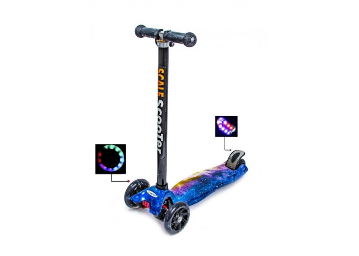 Дитячий самокат Scale Sport від SCOOTER MAXI - легкий в управлінні, маневрений, стійкий. Він дозволить дитині з радістю насолоджуватися швидкою їздою. Усі колеса при катанні світяться!