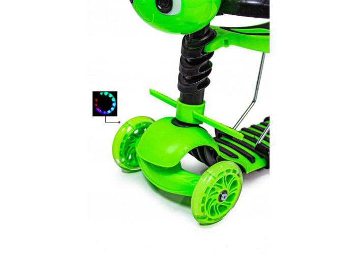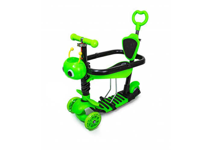 Спеціально для найменших, самокат оснащений підставкою для ніг на кермі, для повного контролю, самокат оснащений батьківською ручкою. При необхідності її можна відрегулювати по висоті, а також у міру зростання дитини її можна зняти.