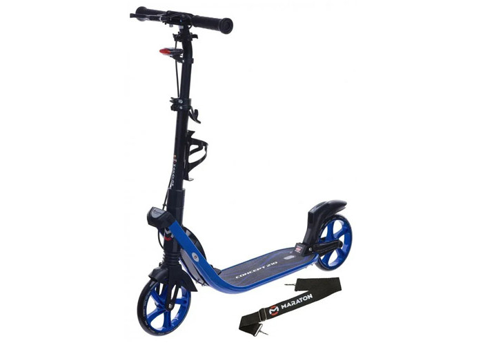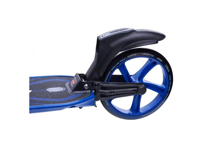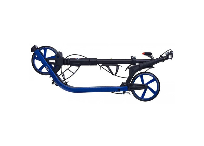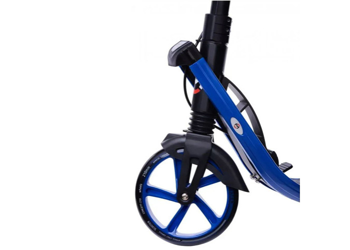 Великі поліуретанові м'які колеса і задній амортизатор самоката роблять їзду плавною, поглинаючи вібрації від нерівностей дорожнього полотна. Кермо самоката регулюється по висоті, тому кататися на ньому можуть і дорослі, і діти.