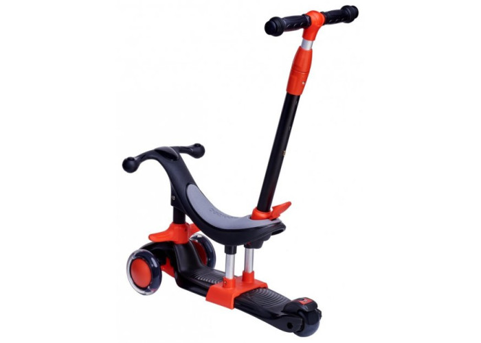 У той же час, цей самокат легко можна перебудувати в стандартний класичний Максі, який підходить дітям від 2-х років і до 6-ти. Батьківська ручка легко переставляється наперед і стає кермом триколісного самоката з можливість регулювання по висоті на 3 положення.