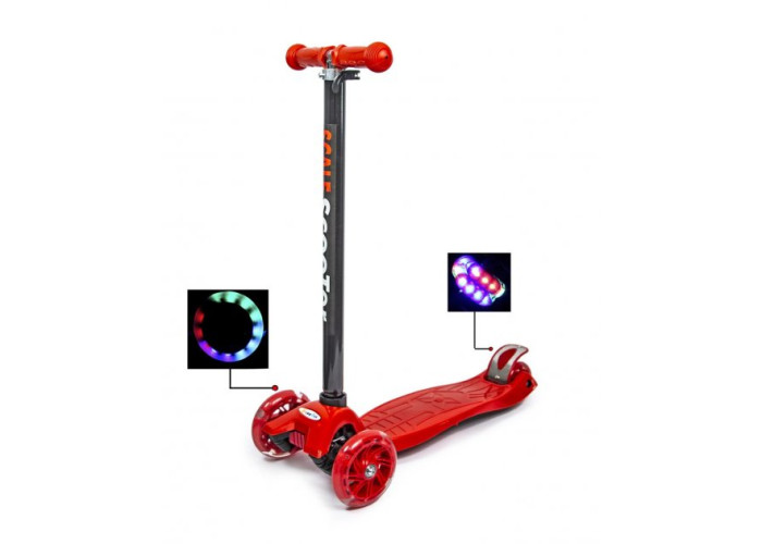Самокат Maxi - легкий в управлінні, маневрений, стійкий. Він дозволить дитині з радістю насолоджуватися швидкою їздою. Конструкція розроблена спеціально для дітей від 3-6 років до 60 кг. Усі колеса при катанні світяться!