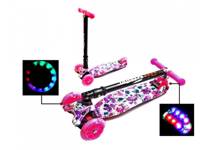 Самокат Maxi - легкий в управлінні, маневрений, стійкий. Він дозволить дитині з радістю насолоджуватися швидкою їздою. Конструкція розроблена спеціально для дітей від 3-10 років до 60 кг. Усі колеса при катанні світяться!