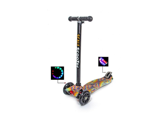 Самокат Maxi - легкий в управлінні, маневрений, стійкий. Він дозволить дитині з радістю насолоджуватися швидкою їздою. Конструкція розроблена спеціально для дітей від 3-6 років до 60 кг. Усі колеса при катанні світяться!