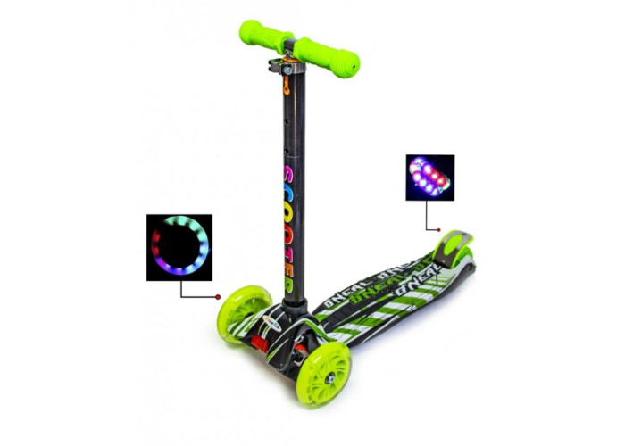 Самокат Maxi - легкий в управлінні, маневрений, стійкий. Він дозволить дитині з радістю насолоджуватися швидкою їздою. Конструкція розроблена спеціально для дітей від 3-6 років до 60 кг. Усі колеса при катанні світяться!