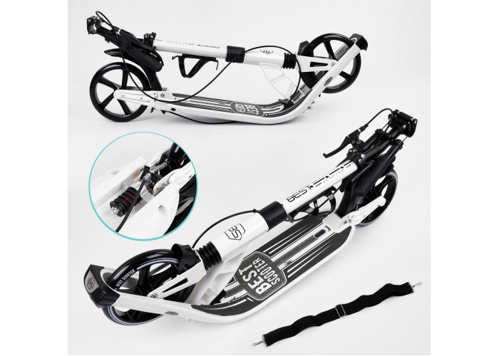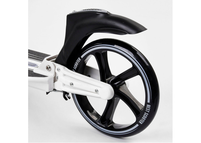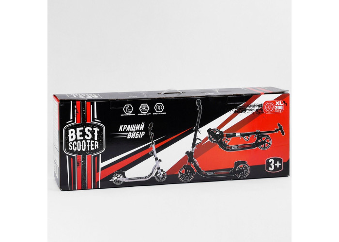 Двоколісний самокат від "Best Scooter" прекрасно підійде для їзди по місту оскільки має великі 200 мм. колеса і два амортизатора, завдяки цьому Ви не відчуєте дрібних нерівностей, і насолодитеся комфортної, плавної їздою. Самокат оснащений двома видами гальмування: ножний (заднє крило) і ручний (на рукоятці).