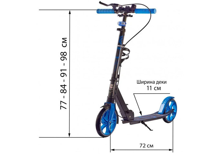 Самокат поєднує у собі найкращі характеристики міських самокатів. Колеса цієї моделі мають діаметр 200 мм. Це сприяє швидкому набору швидкості та плавному катанню. Ручки керма додатково фіксуються ексцентриком, щоб не деренчали при їзді. Комплектується ліхтариком та ременем для перенесення.