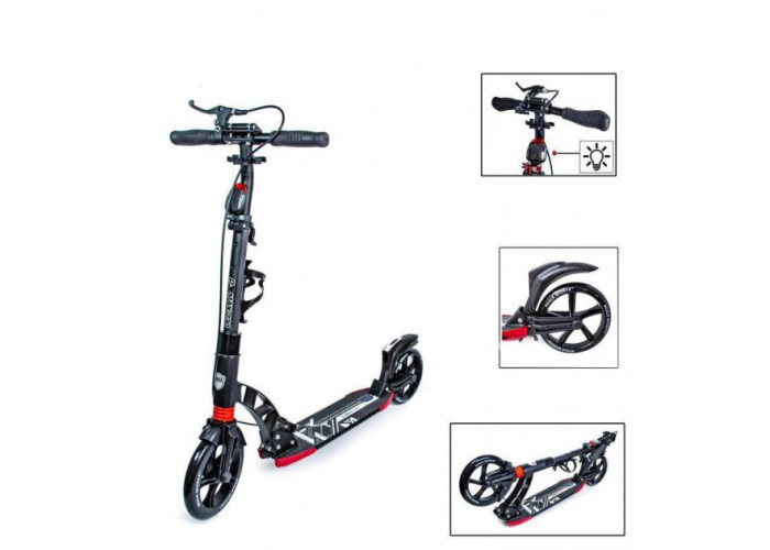 Самокат Scale Sports D-Max 230 з Ручним Гальмом - модний і стильний міський самокат на амортизаторах і з ручним гальмом, що витримує великі навантаження, з надійною і простою системою складання. У даній моделі є ліхтарик на сонячній батареї!