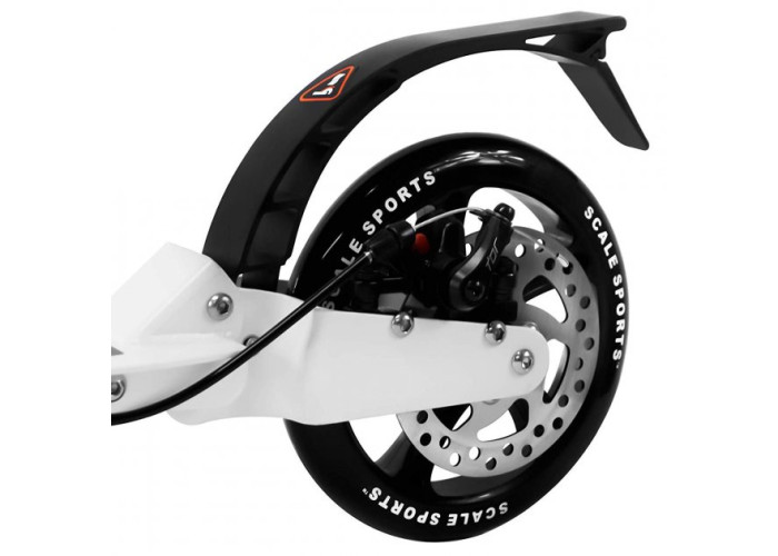 Для надійного гальмування самокат Scale Sports SS-04 оснащений двома гальмами - ножний (заднє крило) і ручний дисковий для швидкого гальмування, який встановлений на рукоятці у вигляді зручного важеля.
