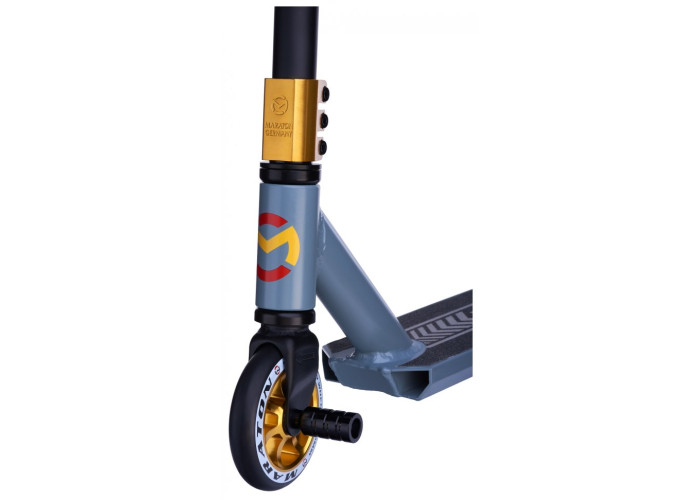 Кермо самоката Maraton потужне, міцніше, ніж у моделей класу нижче. Він з легкістю обертається на 360 градусів. В низу керма встановлені пропрацьовані, плавні підшипники з якими можна точно направити самокат і робити трюки в повітрі.