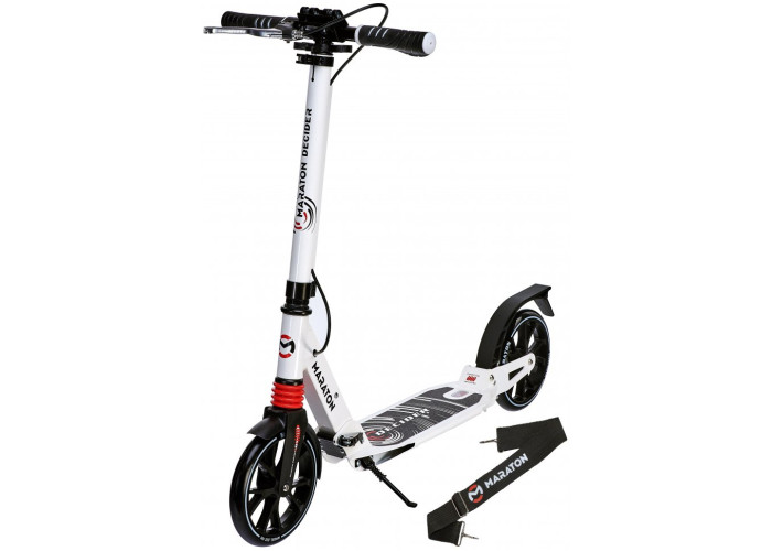 Міський самокат Maraton Decider має легку систему складання, а також ремінь для перенесення, завдяки чому його зручно зберігати та транспортувати.