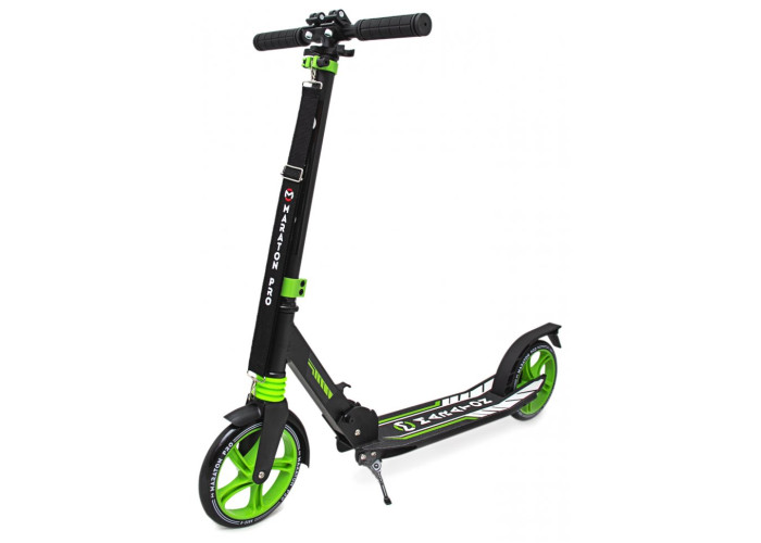Maraton Pro - самокат для дорослих та підлітків. Висока вантажопідйомність до 100 кг. Двоколісний самокат Maraton Pro відрізняється не тільки стильним дизайном, він досить міцний та надійний. Рама самокату представлена металом алюмінію. Невелика вага дозволить дитині легко переносити самокат через перешкоди. Стійкі колеса з поліуретану гарантують швидкість та плавність ходу. Зберігати та транспортувати самокат дуже просто — адже він складається до компактних розмірів.