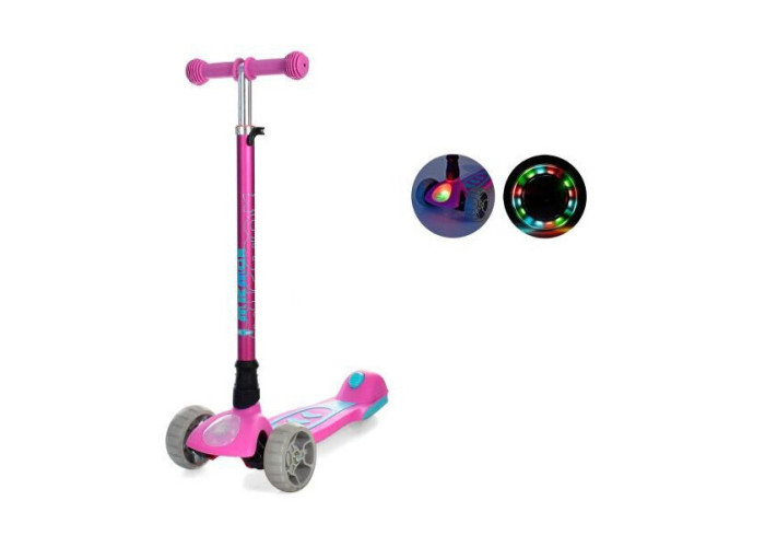 Дитячий самокат має регульоване по висоті кермо, що дозволяє встановити його під зріст дитини і робить керування ще більш комфортним, самокат має підсвічування на колесах, що робить їзду ще більш цікавою та захоплюючою.