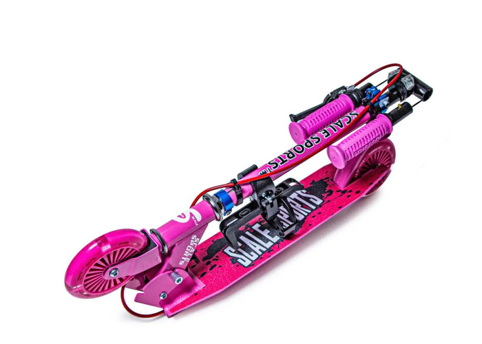 Двоколісний складний самокат Scale Sports SS-13 рожевий - самокат на 12 см колесах - яскравий і зручний самокат, оснащений м'якими поліуретановими колесами, ножним і ручним гальмом і можливістю регулювання керма по висоті (3 положення - 68 73 78 см). Стильний дизайн приверне увагу всіх оточуючих та сподобається Вашій дитині. Складаний двоколісний самокат Scale Sports SS-13 має міцну конструкцію, 2 колеса забезпечують максимальну маневреність. У самокаті ручка регулюється по висоті, що дозволяє кататися старшим дітям.