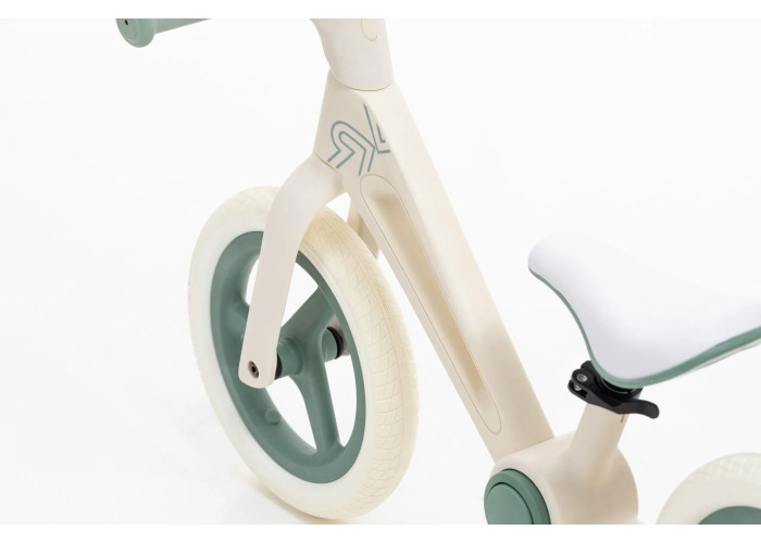 Беговел розроблений зі спеціальною функцією складання, що полегшує його транспортування та зберігання. Одним натисканням ви можете його швидко скласти, а спеціальна ручка для перенесення, розташована під сидінням, дозволяє легко переносити велобіг, який важить всього 3 кг. Його зручно брати з собою в дорогу, покласти у валізку, багажник, або прибрати на полицю. Компактний ранбайк у складеному вигляді має габарити 67х45 см.