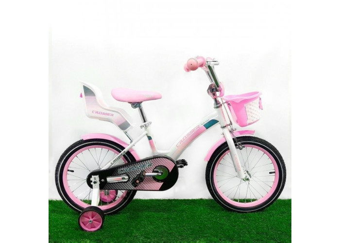 Красивый, яркий и качественный велосипед для маленьких принцесс! Руль и сиденье регулируется по высоте, что помогает подобрать параметры под нужный рост ребенка. Сиденье мягкое и удобное, а на руле прорезиненные грипсы, чтобы маленькие ручки не скользили и езда на велосипеде была комфортной. Рама выполнена из прочной стали и удобной заниженной конструкцией. Также у велосипеда Crosser Kids Bike есть звоночек и корзина на руле, а сзади багажник для пупса с ремнями безопасности, что приведет в восторг любую девочку.