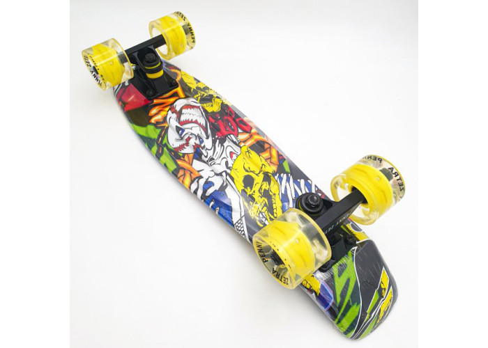 Дека пеніборда довжиною в 55 см виготовлена з якісного полікарбонату, що робить його дуже гнучким і міцним. Якісна підвіска з надміцного алюмінію і м'якою амортизації, дозволяє легко керувати ним і відчувати себе впевнено катаючись на даному пенніборді.
