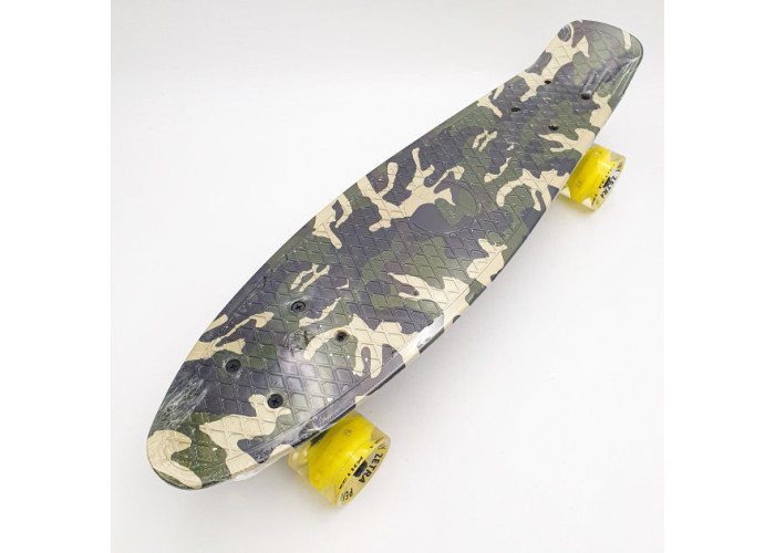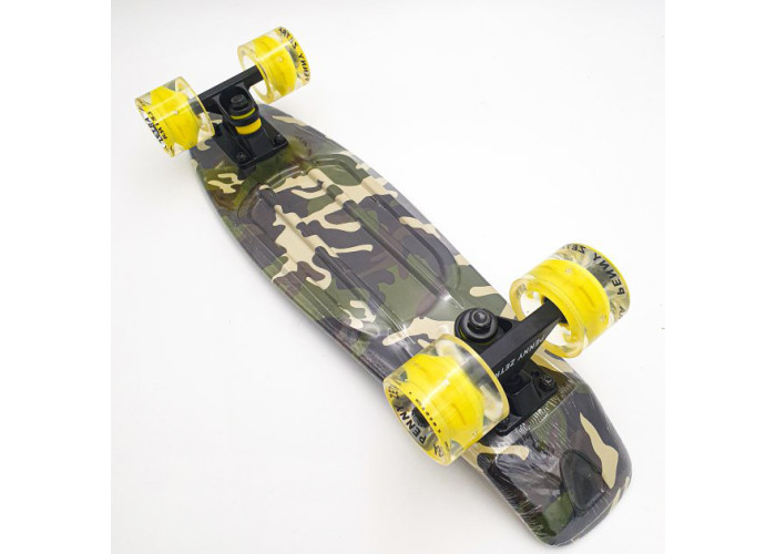 Дека пеніборда довжиною в 55 см виготовлена з якісного полікарбонату, що робить його дуже гнучким і міцним. Якісна підвіска з надміцного алюмінію і м'якою амортизації, дозволяє легко керувати ним і відчувати себе впевнено катаючись на даному пенніборді.