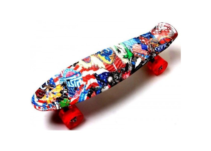 Пенни борд — это виниловая, усиленная с ребрами жесткости, противня ярких и сочных цветов. Несмотря на свои размеры, способен развивать высокую скорость –; его колеса специально предназначены для такой езды.
