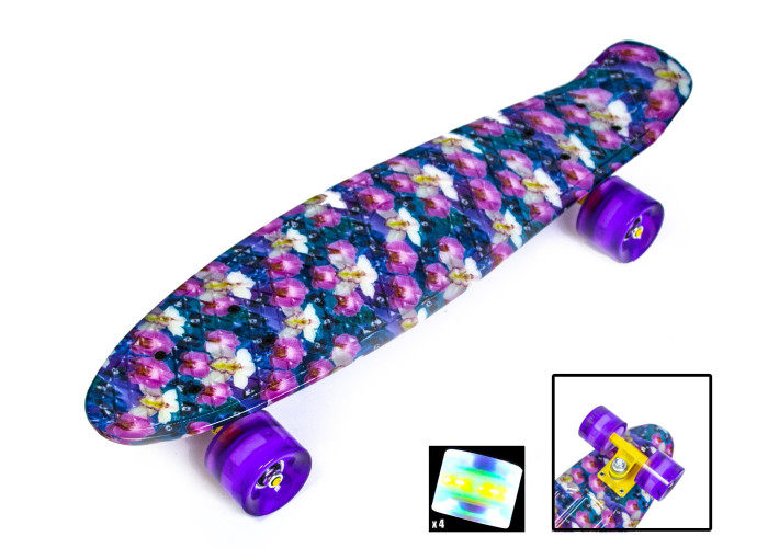Завдяки своїй конструкції, міцним матеріалами і яскравому забарвленню пеніборди отримали останнім часом приголомшливу популярність. Для Вашого маленького екстремала такий подарунок стане чудовим сюрпризом. Крутий різнокольоровий дизайн деки. Оригінально вбудована ручка. Алюмінієва підвіска, підшипники АВЕС 7, широкі безшумні ПУ колеса діаметром 6 см, які підсвічуються під час руху.