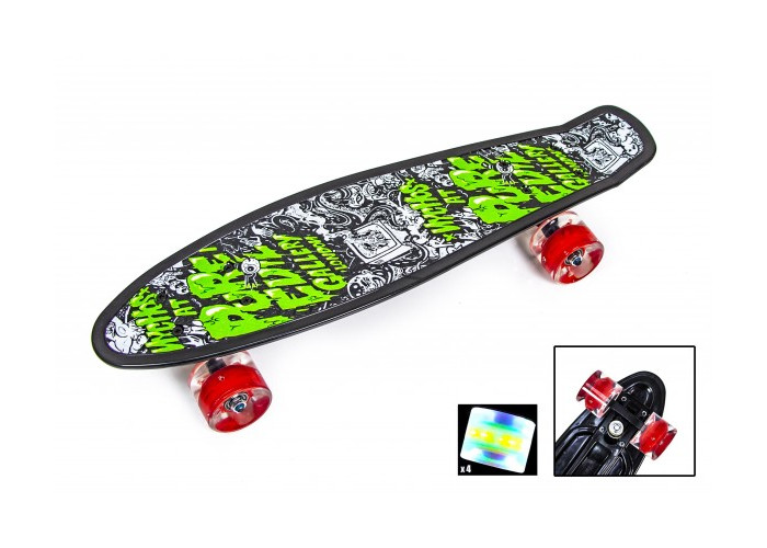 Завдяки своїй конструкції, міцним матеріалами і яскравому забарвленню пеніборди отримали останнім часом приголомшливу популярність. Для Вашого маленького екстремала такий подарунок стане чудовим сюрпризом. Крутий різнокольоровий дизайн деки. Оригінально вбудована ручка. Алюмінієва підвіска, підшипники АВЕС 7, широкі безшумні ПУ колеса діаметром 6 см, які підсвічуються під час руху.