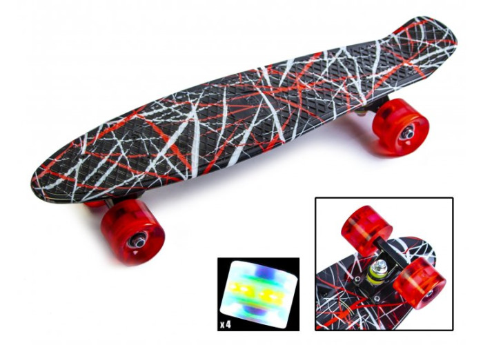 Завдяки своїй конструкції, міцним матеріалами і яскравому забарвленню пеніборди отримали останнім часом приголомшливу популярність. Для Вашого маленького екстремала такий подарунок стане чудовим сюрпризом. Крутий різнокольоровий дизайн деки. Оригінально вбудована ручка. Алюмінієва підвіска, підшипники АВЕС 7, широкі безшумні ПУ колеса діаметром 6 см.