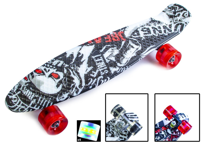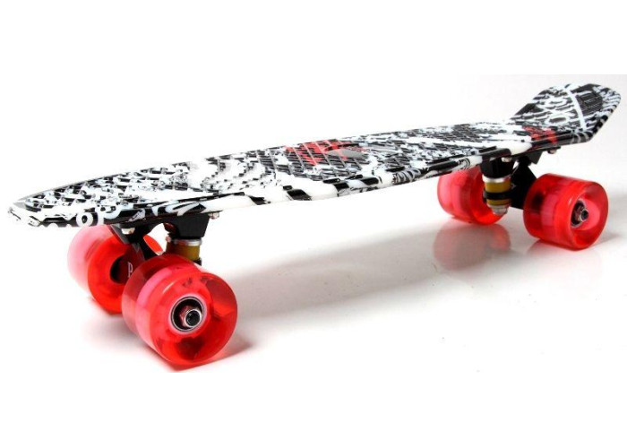 Завдяки своїй конструкції, міцним матеріалам і яскравому забарвленню пеніборди набули останнім часом приголомшливої популярності. Для Вашого маленького екстремалу такий подарунок стане чудовим сюрпризом. Крутий різнокольорові деки дизайн. Оригінально вбудована ручка. Алюмінієва підвіска, підшипники АВЕС 7, широкі безшумні колеса ПУ діаметром 6 см, які підсвічуються під час руху.
