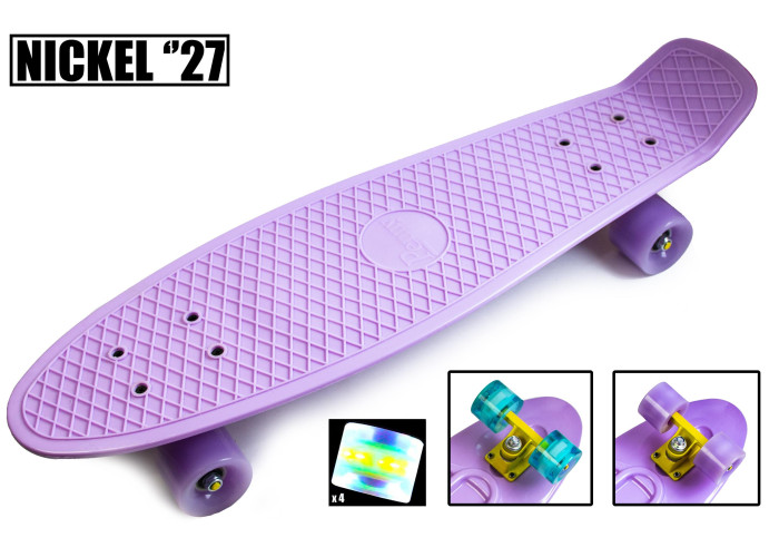 Пені борд (Penny Board) Nickel 27 " - одна з найміцніших і швидких моделей пені, на якій з легкістю може розміститися навіть чоловік з великою вагою і розміром ноги. У цій моделі поєднані класичний дизайн і поліпшені характеристики: довжина деки 70 см (в стандартному пені вона становить 55 см) - це гарантує стійке положення і повну впевненість під час катання.