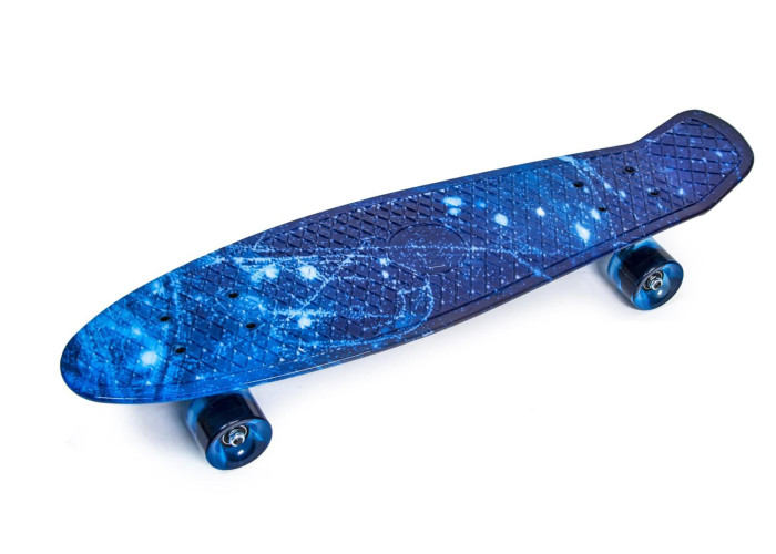 Пенні борд (Penny Board) Nickel 27 "з світяться колесами - одна з найміцніших і швидких моделей пенні, на якій з легкістю може розміститися навіть чоловік з великою вагою і розміром ноги. У цій моделі суміщений класичний дизайн і поліпшені характеристики: довжина деки 70 см (в стандартному пенні вона становить 55 см) - це гарантує стійке положення і повну впевненість під час катання.