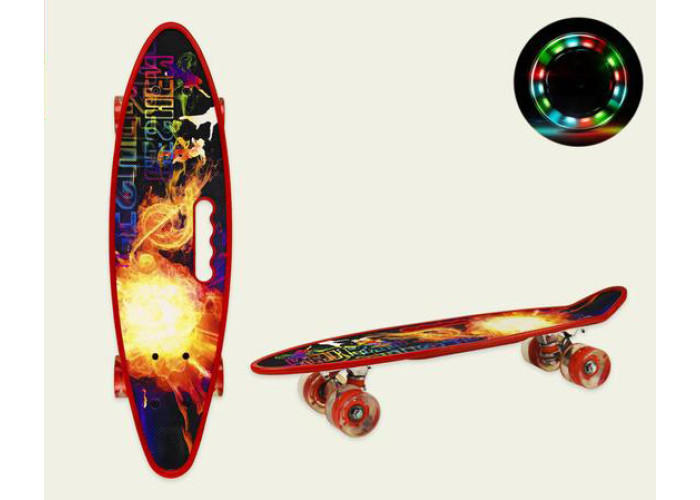 Яскравий, стильний борд - найкращий вибір для сучасних дітей та підлітків. Ці легкі, зручні та маневрені скейти користуються широкою популярністю серед дітей та дорослих у всьому світі. Вся дека оформлена яскравим малюнком, а її сторона має вигин вгору. Також, в деці даного скейту розташовується отвір, який служить ручкою для його перенесення.