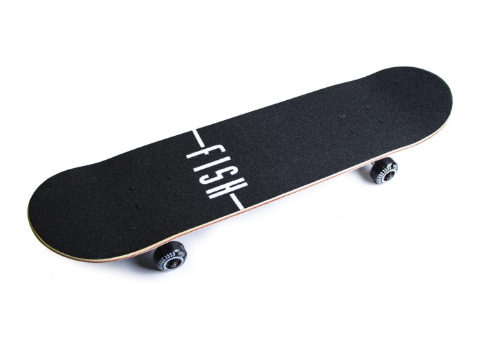 Просте і одночасно оригінальне оформлення скейта FISH "TRI" зробить власника впізнаваним. Брутальний чорний верх і оригінальний малюнок внизу приведуть в захват любителів скейтбордингу. Модний аксесуар для вуличного спорту стане відмінним помічником для поліпшення координації та вирівнювання постави.