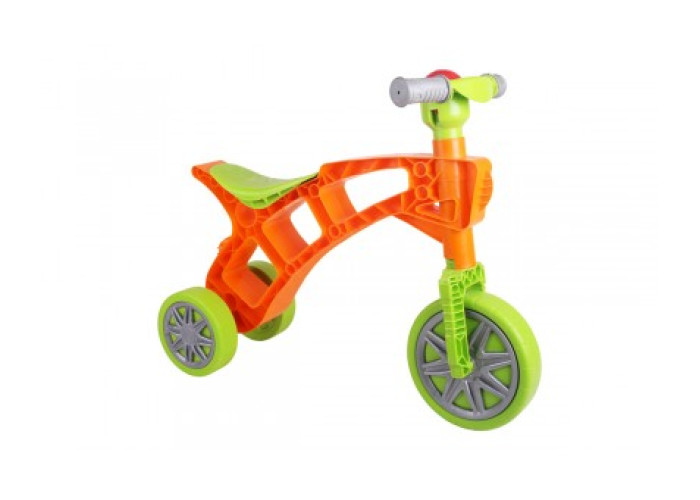 Яскравий та кольоровий прогулянковий ролоцикл стане першим самостійним транспортним засобом малюка. Виконаний у стилістиці техно-байка та пофарбований у яскраві контрастні кольори. Пересуватися на ньому дуже легко – просто відштовхуватись ногами від поверхні. Поворотне переднє колесо з кермом, ергономічне сидіння, два задніх колеса для стійкості. На кермі велика кнопка сигналу-бібікалки. Жорсткі колеса дозволяють кататися по рівній поверхні і в приміщенні, і на вулиці. Максимальна вага навантаження – до 20 кг. Виконаний із удароміцного пластику.