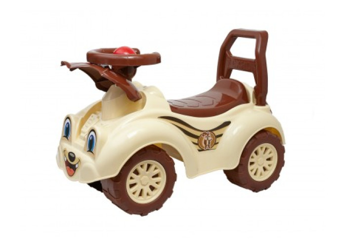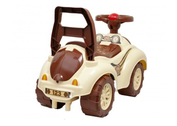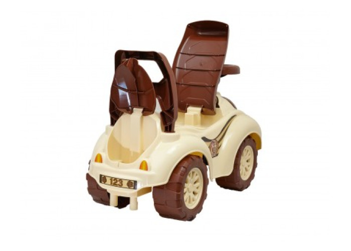 Зручна спинка підтримує дитину під час катання. Імітація вихлопної труби забезпечує стійкість автомобіля від перекидання. На великих міцних колесах автомобіль має високу прохідність різних дорожніх покриттях.
