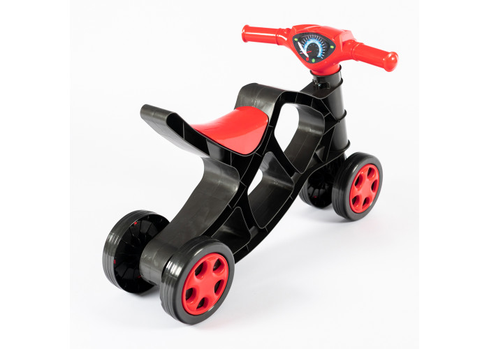 Байк порадує дитину як вдома, так і на прогулянці у дворі. Забравшись на нього дитина зможе покататися сама, відштовхуючись при цьому ніжками від підлоги. Зручна форма керма дозволяє малюку міцно триматися. При повороті керма повертаються передні колеса. Мотоцикл виготовлений з якісного, нетоксичного пластика в яскравих кольорах. Завдяки тому, що мотоцикл дуже компактний, його зручно зберігати і брати на дитячий майданчик, для того щоб малюк завжди міг покататися на своєму особистому мотоциклі.