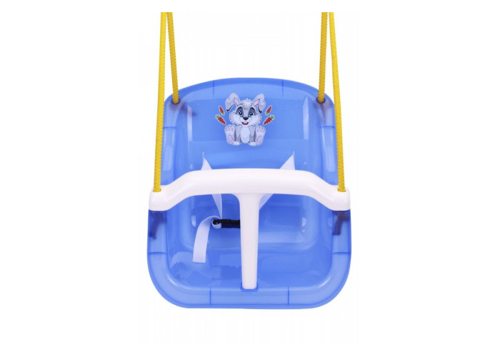 Для безпеки малюка передбачена надійна Т-подібна поперечина, яку при необхідності можна підняти. Фіксатори поперечини знаходяться знизу гойдалок, тому підняти її може лише дорослий. За поперечину діткам зручно триматися ручками, що позбавить їхнього почуття страху. Гойдалки також комплектуються поясом із кріпленням.