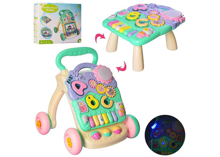 Цей ігровий центр для малюків поєднує у собі ходунки-каталку та дитячий столик. Стійкі ходунки необхідні для дітей які роблять свої перші кроки. Ходунки допомагають малюкові в цей момент відчути себе більш самостійним і впевненим. А якщо малюк ще не пішов, то ходунки можна використовувати як розвиваючий столик.