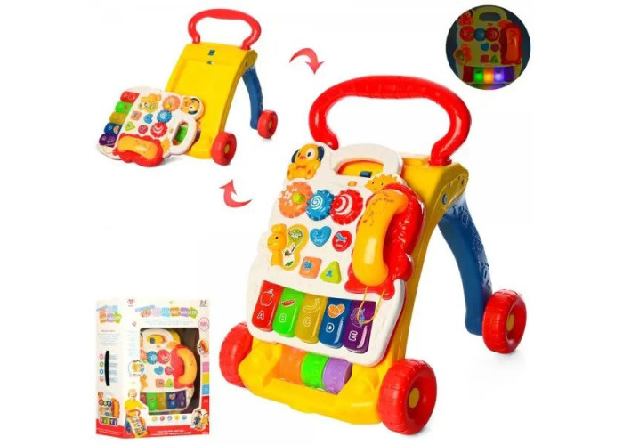 Це універсальна іграшка, яка допоможе малюкові ходити, а також займе його увагу надовго цікавими іграми. Призначена для діток, які тільки починають освоювати перші кроки. Ігрова панель включає багато цікавих елементів.