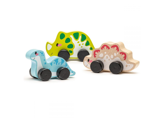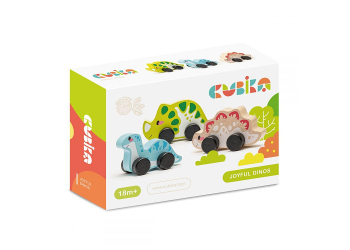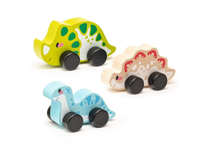- Дерев'яний розвиваючий Набір "Веселі динозаври" Левеня Cubika складається з трьох динозавриків машинок.