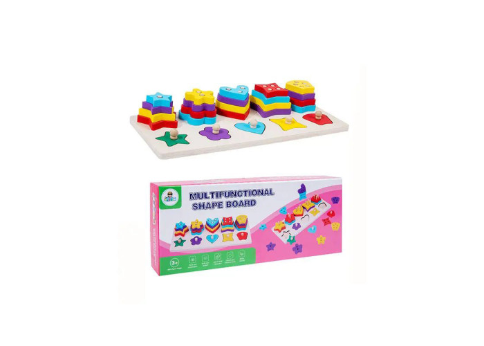 Дерев'яний сортер Геометричний сортер спрямовано на розвиток у малюка певних вікових навичок та вмінь. Нанизуючи дерев'яні фігурки на кілочки, дитина розвиватиме дрібну моторику, координацію рухів та логічне мислення.