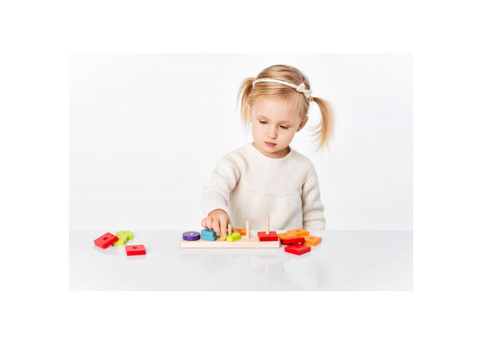 Геометричний сортер Cubika Прямокутник складається з основи і 15 різнокольорових геометричних фігур. Іграшка зроблена на основі класичної методикою Монтессорі, сприяє розвитку дрібної моторики і дозволяє швидко і ефективно навчити дитину базовим поняттям - колір, форма, сортування.