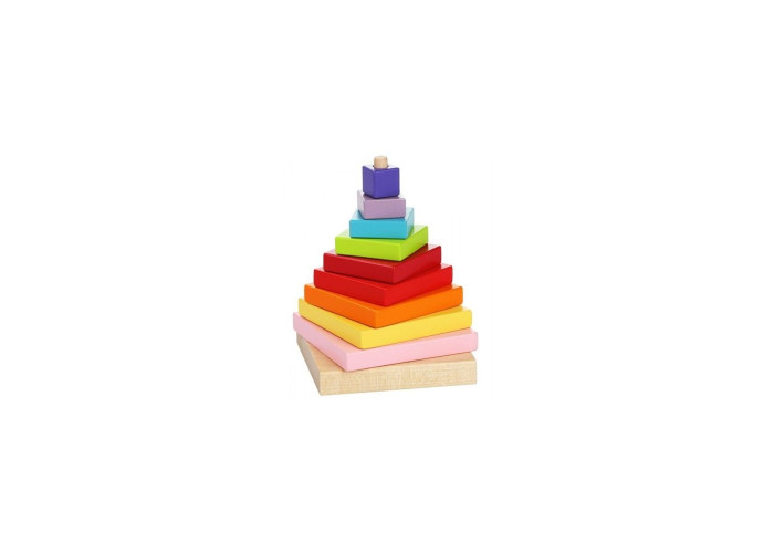 Якісна дерев'яна пірамідка - обов'язкова іграшка в арсеналі посібників для раннього віку. Український еко-бренд пропонує оригінальний варіант класичної іграшки в улюбленій усіма дітлахами формі – у вигляді вежі. Складність складання такої пірамідки в тому, що її деталі різної форми, а також їх не підтримує стрижень. Тобто пірамідку, як і вежу, треба буде зводити. Така гра як розвиває просторове мислення. Вона допомагає відчути баланс, навчить порівнювати предмети формою.