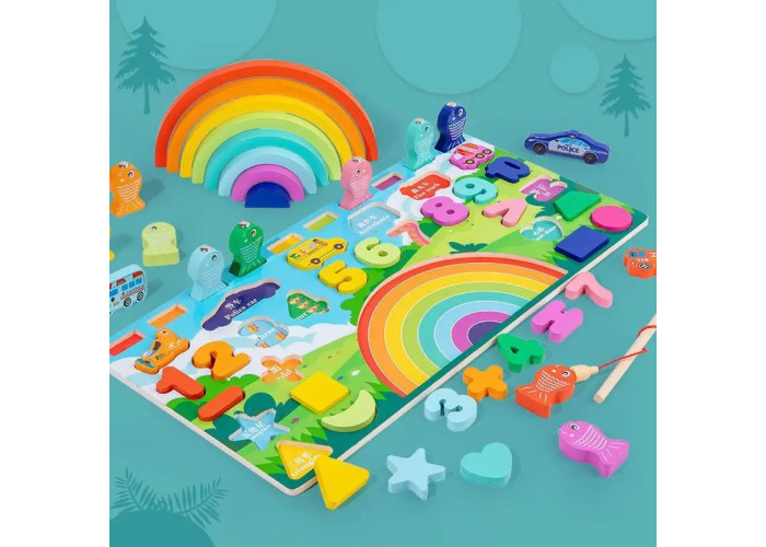 Ігровий центр розвиваючий дерев'яний рибалка,фігурки,цифри, букви