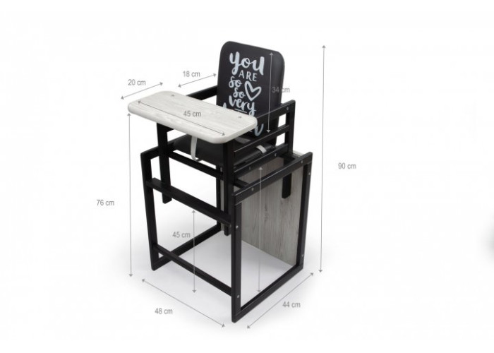 Дитячий дерев'яний стільчик для годування ОMMI Graphite Дуб Клондайк виготовлений з натуральної деревини - масиву вільхи. Цей стільчик для годування є моделлю-трансформером. З 6-го місяця, його можна використовувати як стільчик для годування, а в подальшому, коли малюк підросте, може служити ігровим столиком і звичайним стільчиком. Даний стільчик є, багатофункціональним меблевим гарнітуром, Ваш малюк буде грати улюбленими іграшками, малювати перші малюнки, ліпити перші скульптури і багато іншого.