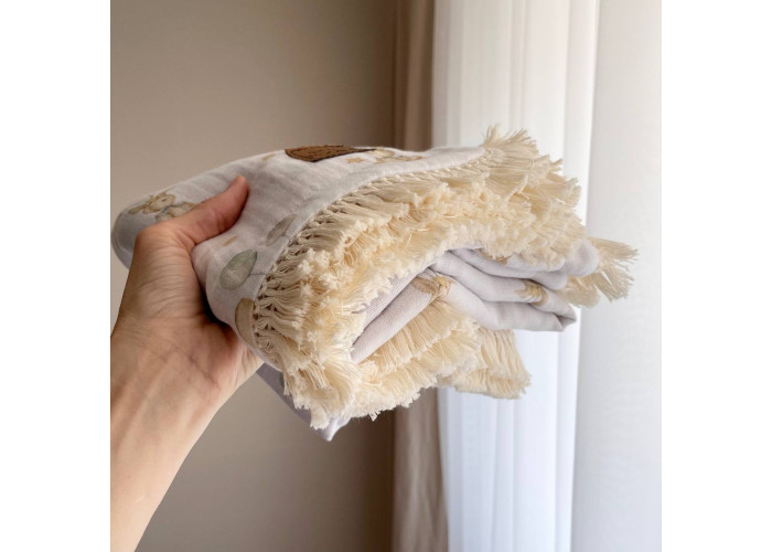 Дитячий плед TM Msonya підійде для діток від народження до 3-х років. Гіпоалергенний, гігієнічний, особливо незамінний в літню спеку. Відмінно вбирає вологу, захищає від перегріву і ультрафіолетових променів ніжну шкіру малюка. У спекотну погоду можна використовувати, як легке покривальце в ліжечко і в коляску , під час прогулянок, або в автомобілі. Ідеальний на виписку і для фотосессій.