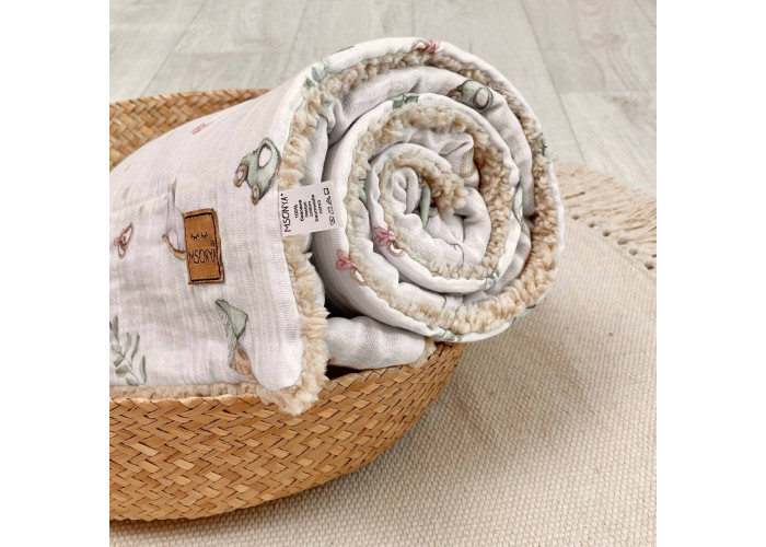 Дитячий мусліновий плед на хутряній підкладці Тедді. Розмір 80х100 +/-2см.