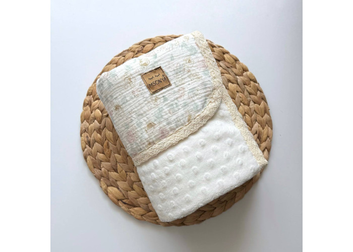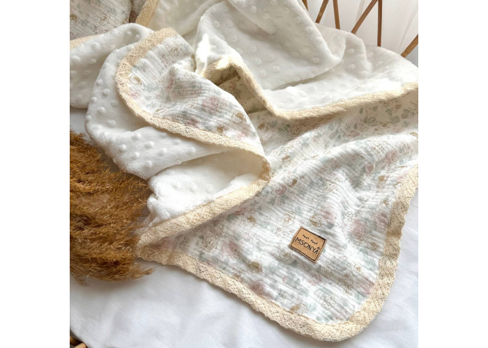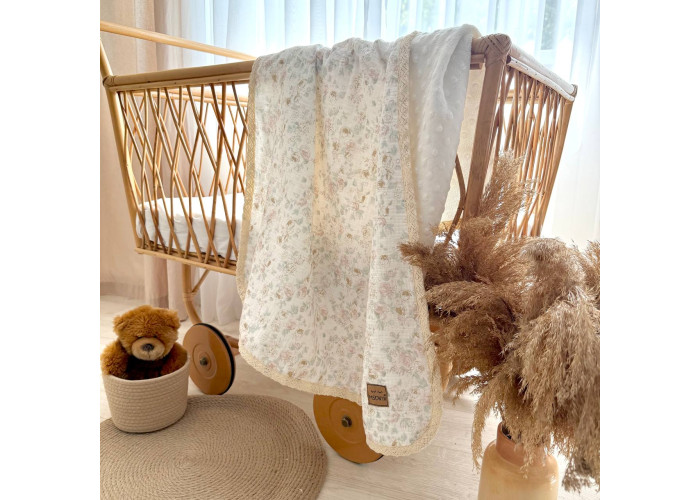 З однієї сторони плед виконаний з двошарового мусліну, з іншої - з тканини Wellsoft, дуже м'якої і приємної на дотик.