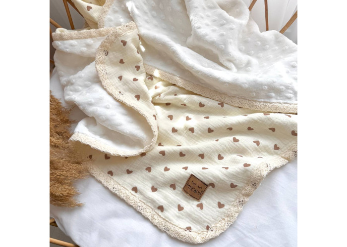 З однієї сторони плед виконаний з двошарового мусліну, з іншої - з тканини Wellsoft, дуже м'якої і приємної на дотик.